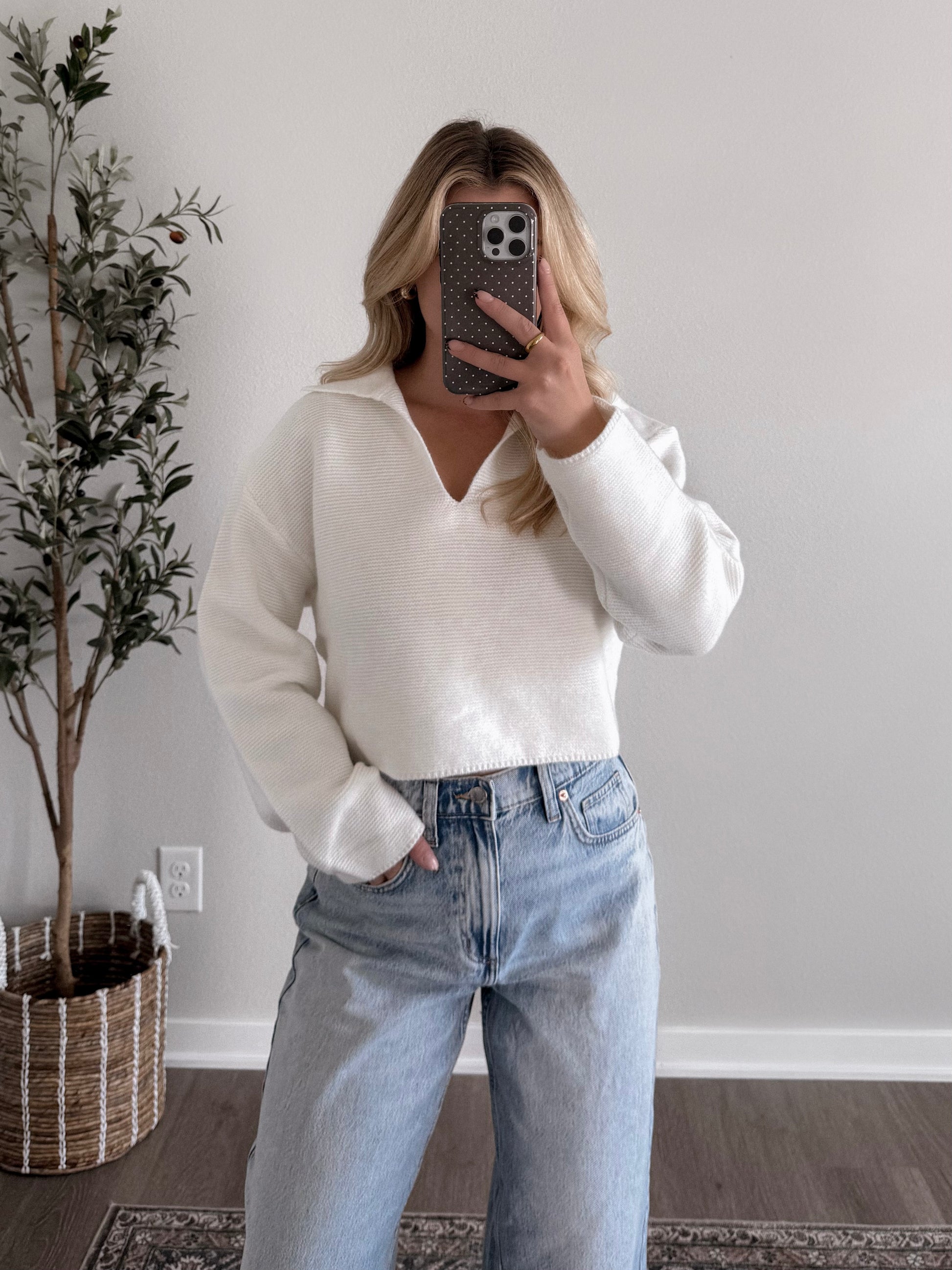 Coffee Date Cropped Knit Sweater / Off White