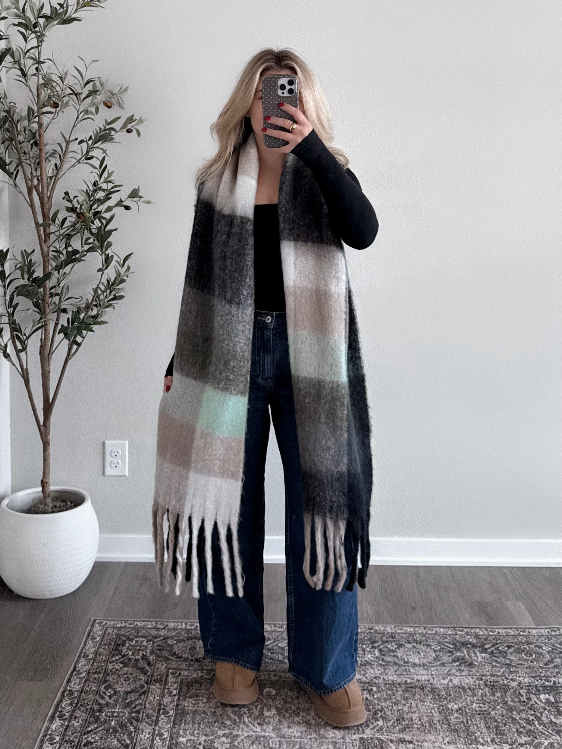 Cozy Check Scarf / Black Mint Combo