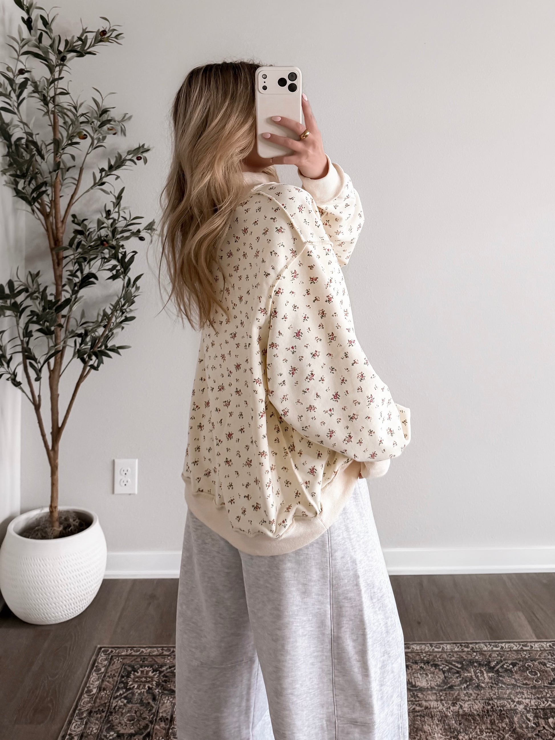 Floral Oversized Mock Neck Pullover
