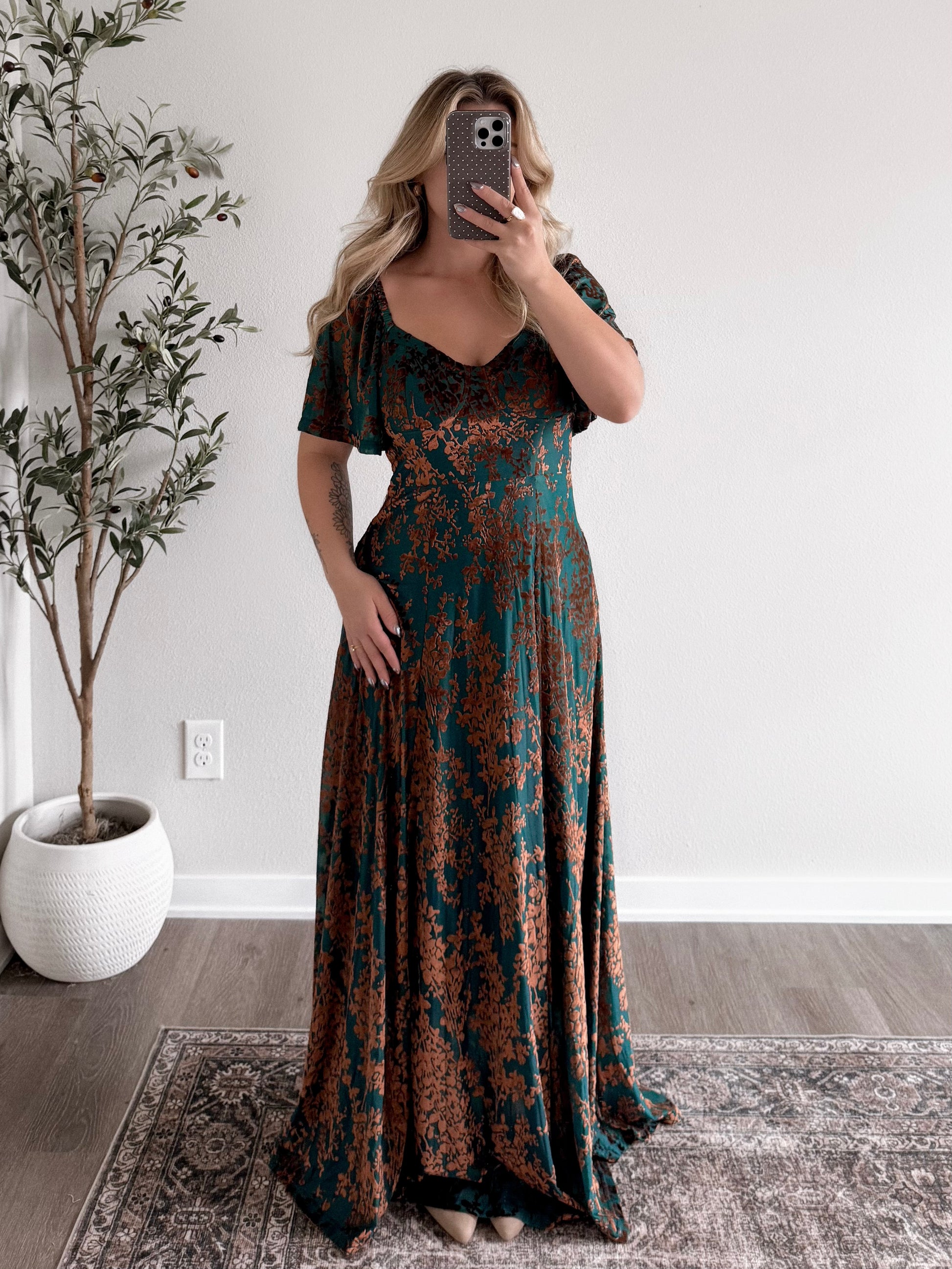 Gilded Ember Velvet Maxi Dress