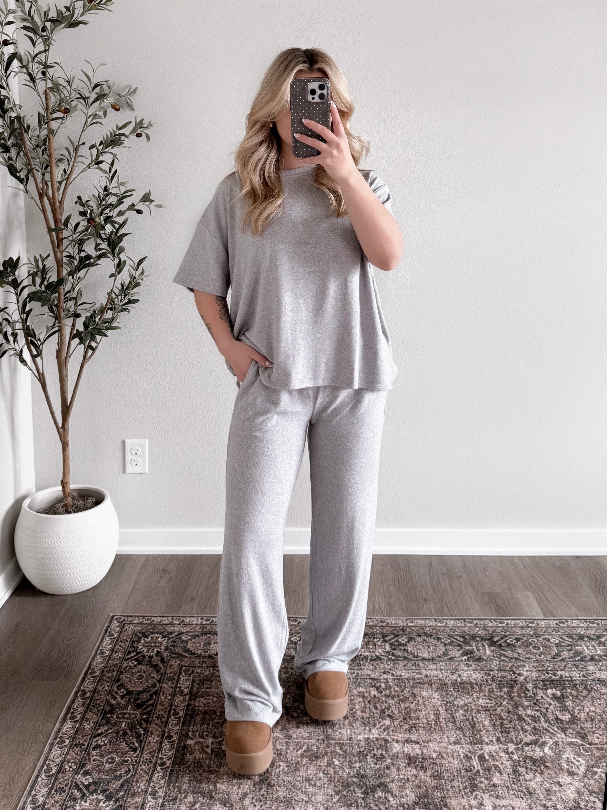 Morning Calm Tee Lounge Set / Grey (PREORDER: EST SHIP 1.09)