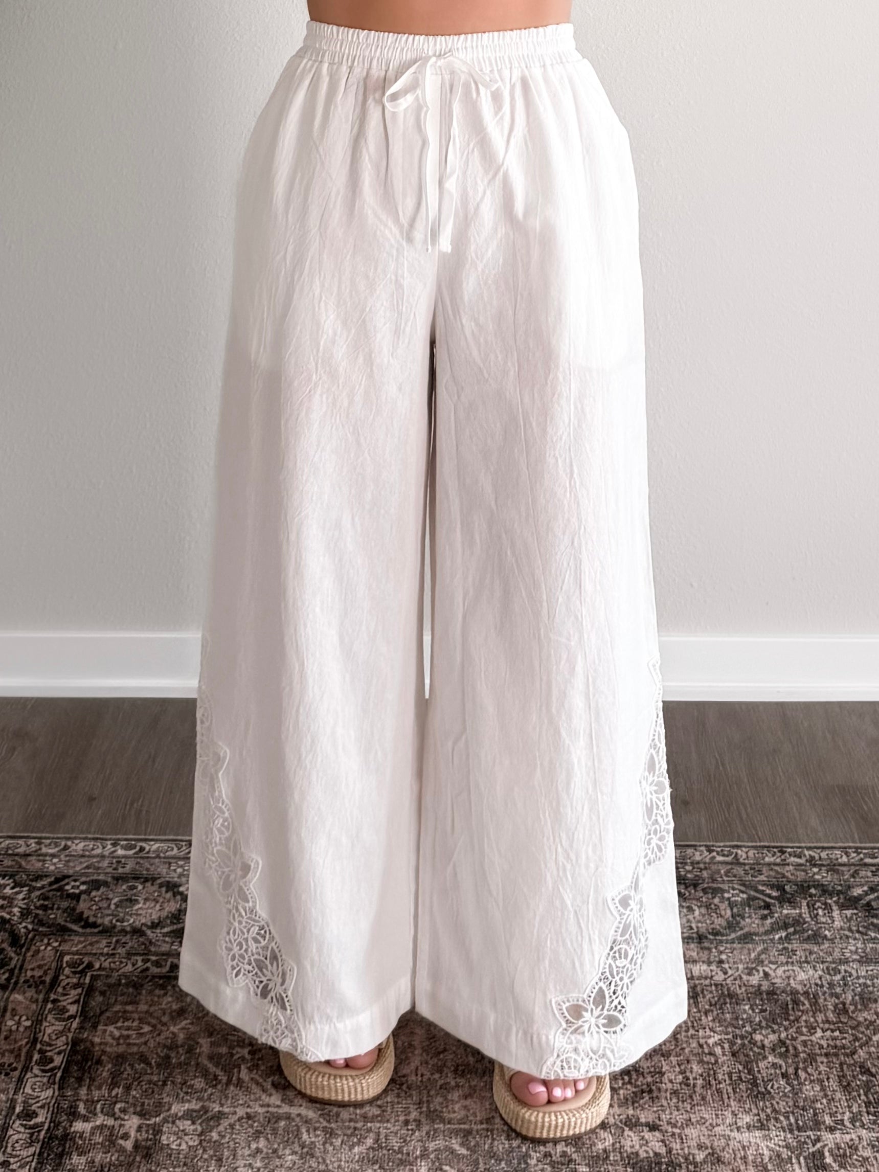 Sun Affair Linen Wide Leg Pant / White