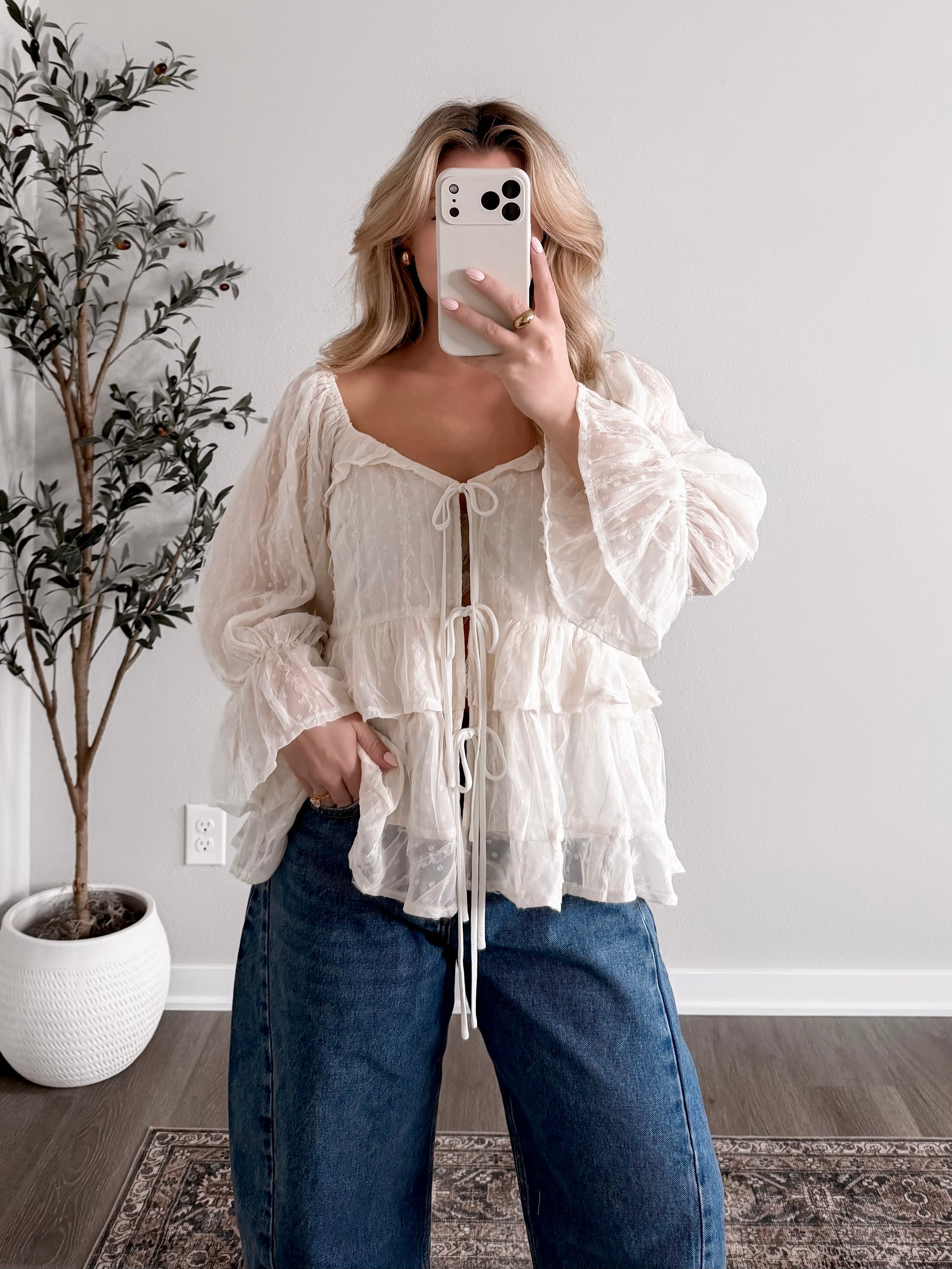 Vanilla Tulle Lace Tie Top